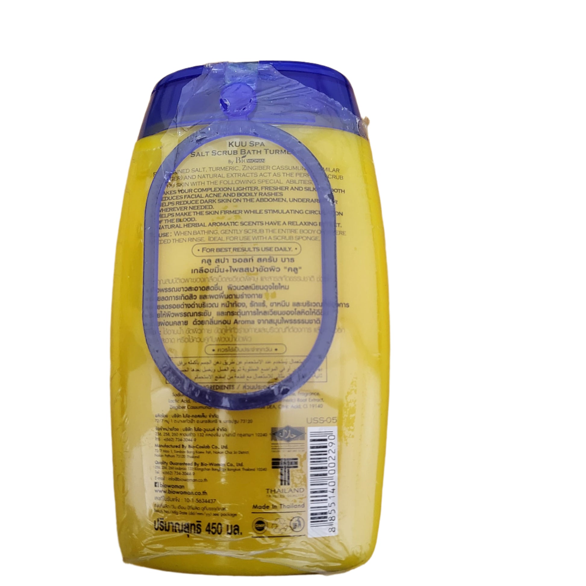 The Tumeric Kuu Spa Salt Scrub Bath Turmeric can also be used as a natural exfoliating scrub that helps to remove dead skin cells, unclog pores and promote healthy skin cell regeneration.